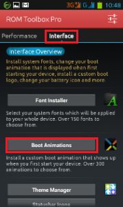 - Geser layar kearah kiri sampai kalian masuk ke menu Interface, kemudian pilih Boot Animation.